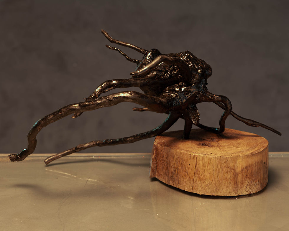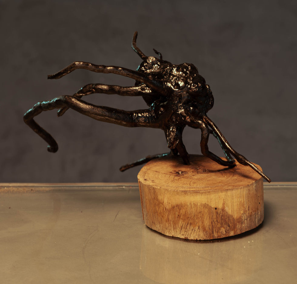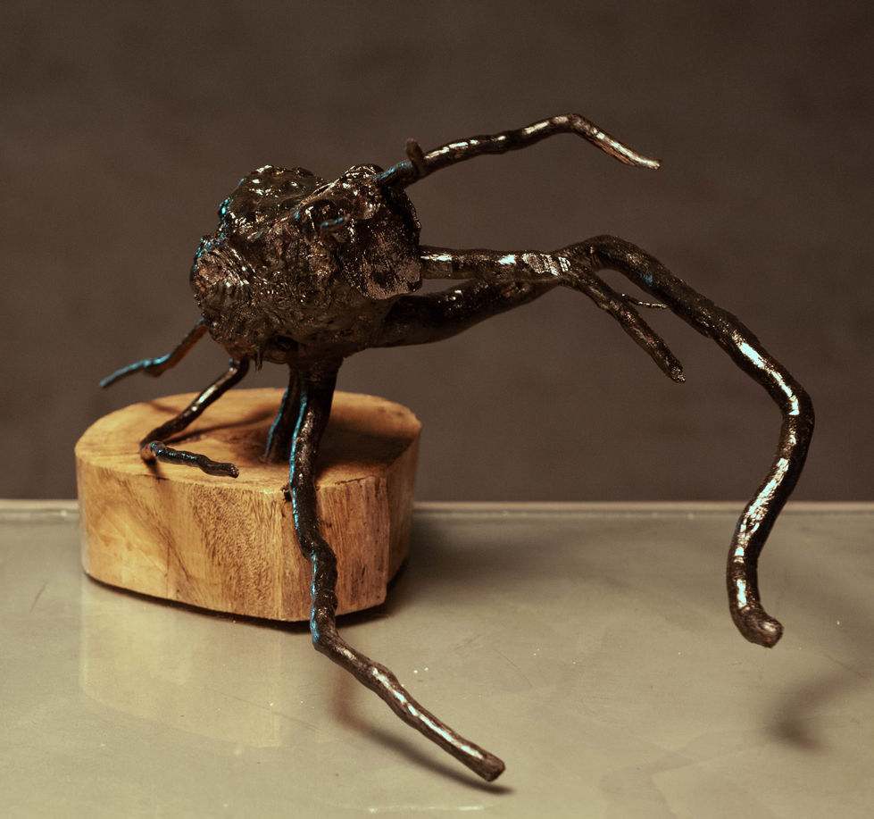 A obra transmite uma tensão constante — as patas parecem se contorcer ou agarrar algo invisível. Não há simetria perfeita, e isso contribui para a sensação de realismo caótico, como ocorre com formas da natureza selvagem. A escultura remete à aranha conhecida por sua beleza perigosa e comportamento simbólico de dominação. Viúva Negra é uma escultura visceral e instigante, que canaliza força, mistério e beleza em uma forma inspirada pela natureza, mas extrapolada pelo olhar artístico. Uma peça que não apenas representa, mas encarna um arquétipo de poder silencioso — elegante, perigoso e absolutamente fascinante.